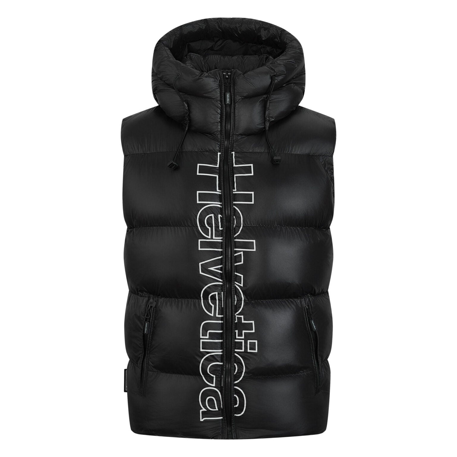 Sleeveless vest with hood.